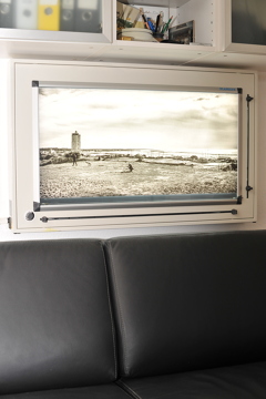 Ich habe die Backlit-Folie auf einen Holzrahmen aufgespannt der von hinten von LED-Streifen beleuchtet wird. Sieht abends einfach traumhaft aus.