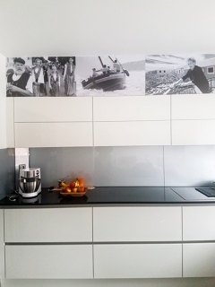 Ich habe die Bilder als Poster in Schwarz/Weiss drucken lassen um die freie Fläche über meine Küche auszufüllen. Die Poster passen perfekt ins Gesamtbild des Raumes, wie ich finde.