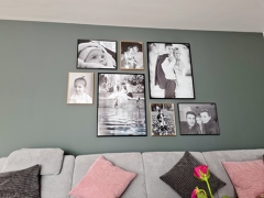 Familien Fotos als Kollage im Wohnzimmer