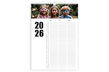Für Wände empfehlen wir den Klassiker A4 oder für große Bilder das A3 Format, für den Schreibtisch den kompakten Tischkalender. Familien lieben den Planer mit mehreren Spalten – perfekt für Termine und Geburtstage.
