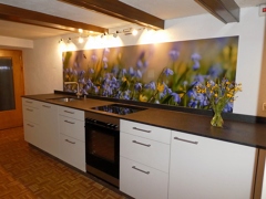 Unsere Küchenrückwand mit "Blick in den Garten" ist gelungen.