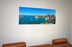 Der Blick von der Sydney Harbour Bridge auf den Hafen und die City von Sydney an einem sonnigen Nachmittag im November. Das Bild hängt nun bei uns im Wohnzimmer und erinnert uns täglich an einen unvergesslichen Urlaub in Down Under. Der Druck auf Echt-Glas ist ausgezeichnet und wir sind sehr zufrieden.