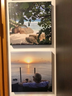 An unseren unvergesslichen Urlaub auf den Seychellen erinnern uns die Fotos neben der Garderobe jeden Tag