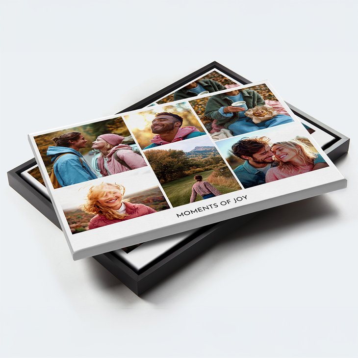Erstelle eine Fotocollage auf Leinwand mit unserem super-einfachen Fotocollagen-Designer. Lade ein oder mehrere Lieblingsmotive hoch und gestalte diese ganz individuell mit persönlichen Texten sowie passenden Cliparts oder Rändern.
