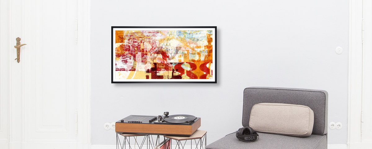 Abstrakt orange im weißen Holzrahmen. Setzen Sie Ihr neues Lieblingsmotiv dezent in Szene - wahlweise mit und ohne Passepartout.