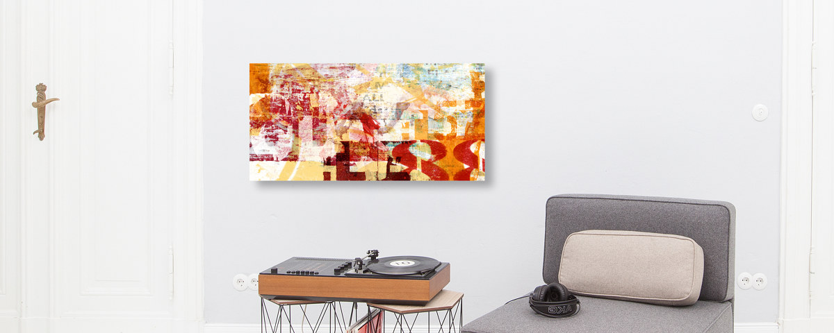 Abstrakt orange auf Leinwand im Format Ihrer Wahl. Mit gespiegelten oder umgeschlagenem Rand bzw. der Randfarbe Ihrer Wahl. Mit 2,5 oder 3,8 cm starken Perfect Frame Rahmen.