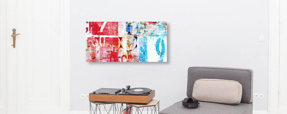 Abstrakte Nummern auf Leinwand im Format Ihrer Wahl. Mit gespiegelten oder umgeschlagenem Rand bzw. der Randfarbe Ihrer Wahl. Mit 2,5 oder 3,8 cm starken Perfect Frame Rahmen.