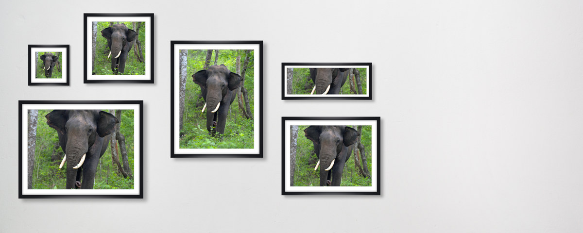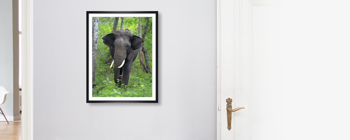 Asian Elephant im weißen Holzrahmen. Setzen Sie Ihr neues Lieblingsmotiv dezent in Szene - wahlweise mit und ohne Passepartout.