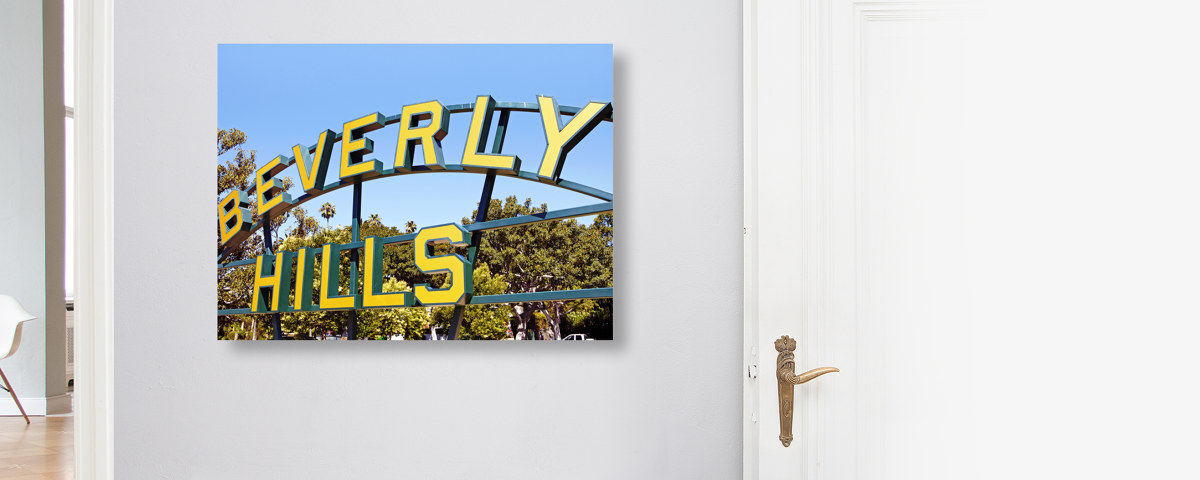 Beverly Hills Sign auf Alu-Dibond im Format Ihrer Wahl als Direktdruck, Fineart matt oder glänzend, als Alu Dibond Butlerfinish® oder als edler Alu Dibond Hahnemühle Fineart Print.