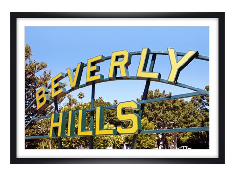 Beverly Hills Sign im weißen Holzrahmen. Setzen Sie Ihr neues Lieblingsmotiv dezent in Szene - wahlweise mit und ohne Passepartout.