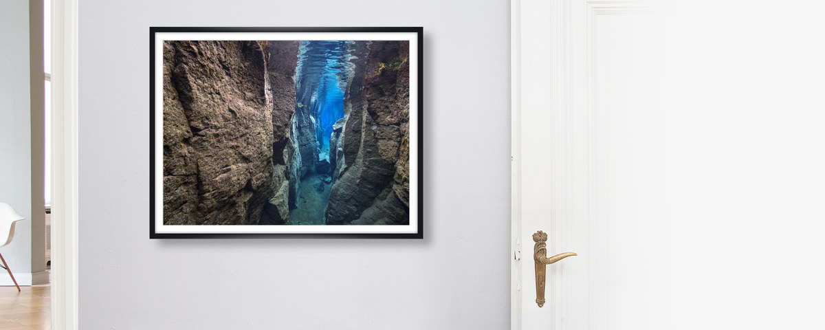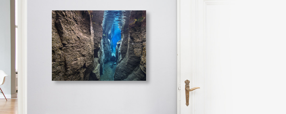 blue Canyon als Hahnemühle Fineart Print. Entweder pur als Print, im Rahmen auch mit Passepartout oder kaschiert auf Alu-Dibond. Das handgeschöpfte Papier zeigt Nuancen Ihres neuen Lieblingsbilds, die auf anderen Materialien im Verborgenen bleiben.