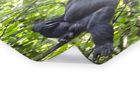 Chimpanzee auf Fotopapier gedruckt, hinter Acrylglas (2 mm) kaschiert und mit einer Aluminium-Dibond-Verbundplatte (3 mm) hinterlegt. Die edelste Inszenierung Ihres neuen Motivs als rahmenloses Bild.