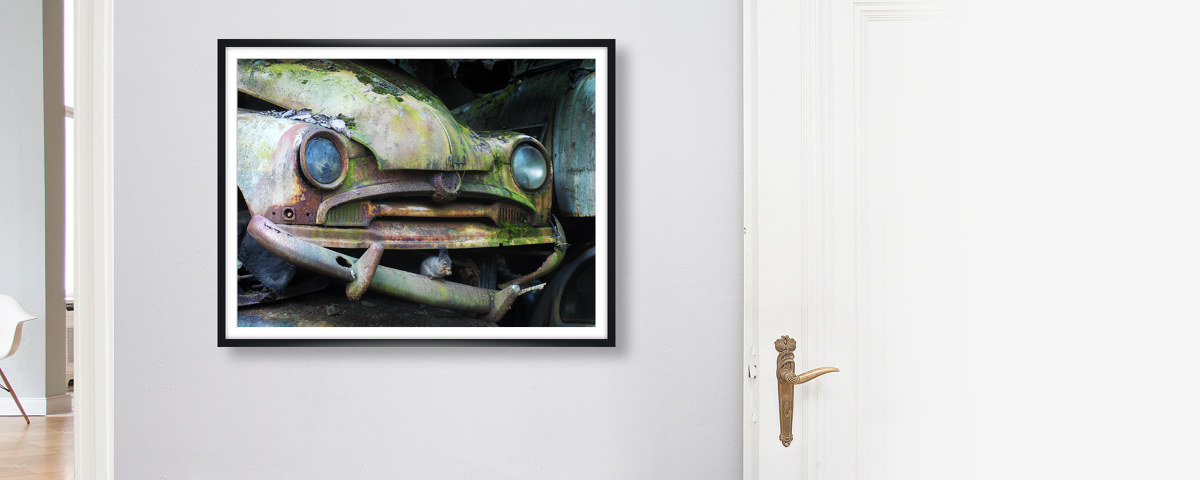 Mahlzeit auf der Stoßstange im weißen Holzrahmen. Setzen Sie Ihr neues Lieblingsmotiv dezent in Szene - wahlweise mit und ohne Passepartout.
