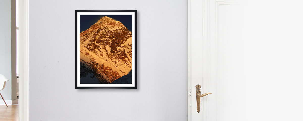 Everest Light als Fotoposter im Großformat Ihrer Wahl. In bester Foto-Qualität für lange anhaltende Erinnerungen, gedruckt mit umweltfreundlicher Drucktechnologie. Mit oder ohne Laminierung.