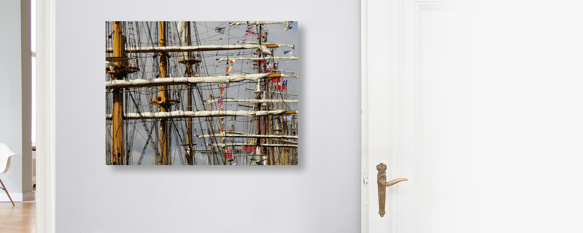 Frigate Boats auf Leinwand im Format Ihrer Wahl. Mit gespiegelten oder umgeschlagenem Rand bzw. der Randfarbe Ihrer Wahl. Mit 2,5 oder 3,8 cm starken Perfect Frame Rahmen.