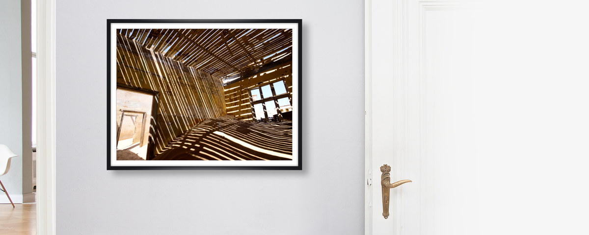 Geisterstadt in Namibia als Hahnemühle Fineart Print. Entweder pur als Print, im Rahmen auch mit Passepartout oder kaschiert auf Alu-Dibond. Das handgeschöpfte Papier zeigt Nuancen Ihres neuen Lieblingsbilds, die auf anderen Materialien im Verborgenen bleiben.