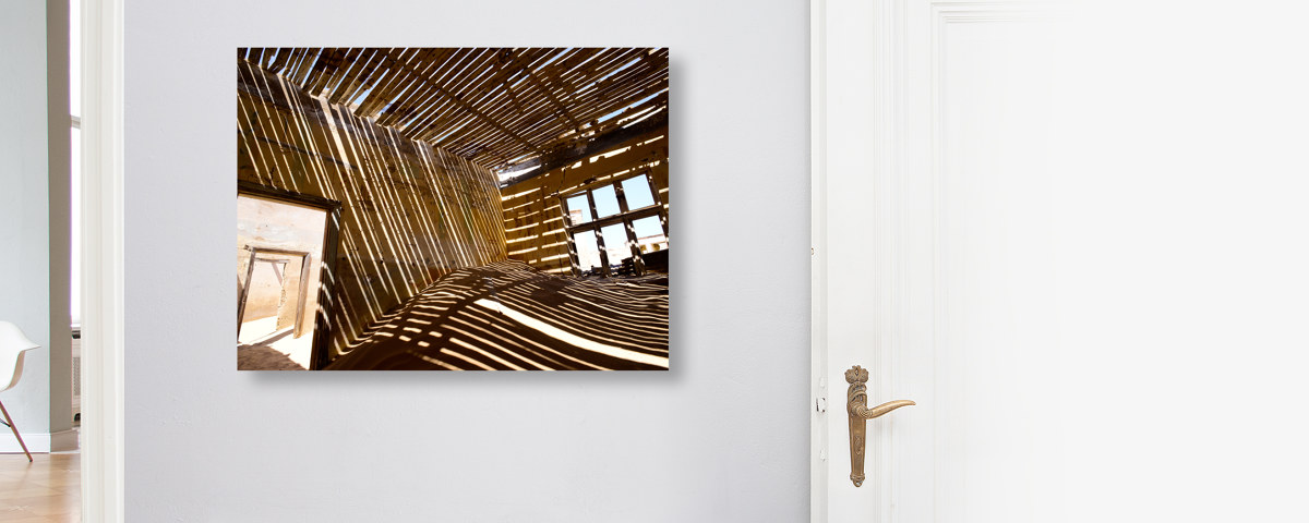 Geisterstadt in Namibia auf Alu-Dibond im Format Ihrer Wahl als Direktdruck, Fineart matt oder glänzend, als Alu Dibond Butlerfinish® oder als edler Alu Dibond Hahnemühle Fineart Print.