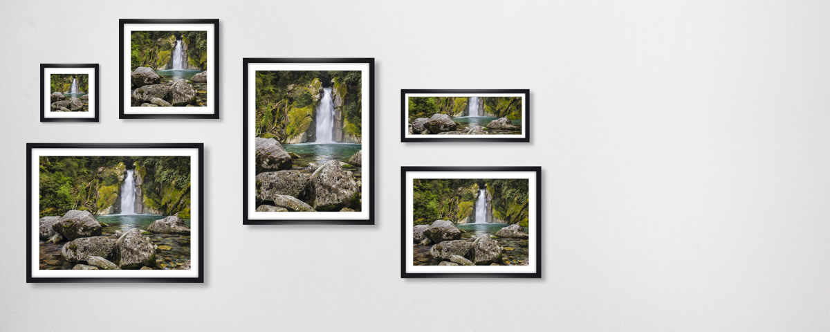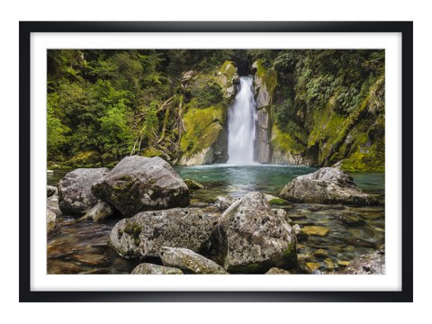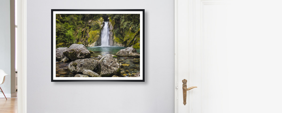 Giant Gate Falls im weißen Holzrahmen. Setzen Sie Ihr neues Lieblingsmotiv dezent in Szene - wahlweise mit und ohne Passepartout.