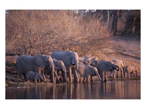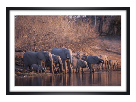 Herd of Elephants im weißen Holzrahmen. Setzen Sie Ihr neues Lieblingsmotiv dezent in Szene - wahlweise mit und ohne Passepartout.