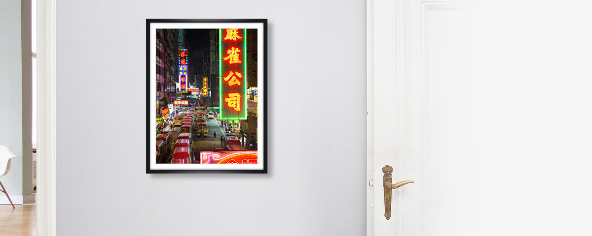 Hong Kong im weißen Holzrahmen. Setzen Sie Ihr neues Lieblingsmotiv dezent in Szene - wahlweise mit und ohne Passepartout.