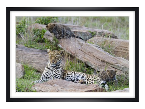 Leopard Mother and Cubs im schwarzen Holzrahmen. Unser Bestseller-Holzrahmen zeigt jedes Motiv von seiner besten Seite. Mit seinen 22 mm gibt er stabilen Halt ohne zu aufdringlich zu sein. Ein perfekter Gentleman für Ihr neues Lieblingsmotiv.