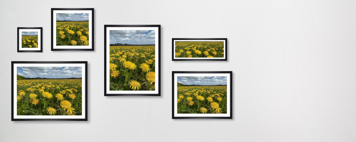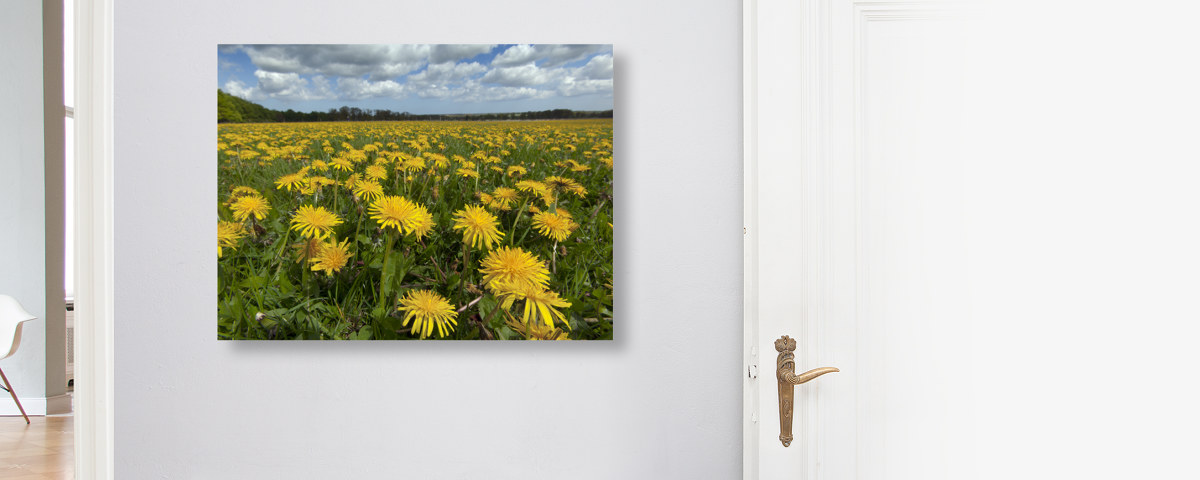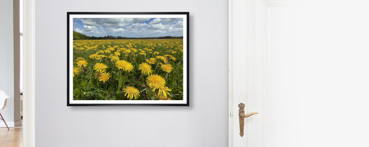 Mass of Dandelions als Hahnemühle Fineart Print. Entweder pur als Print, im Rahmen auch mit Passepartout oder kaschiert auf Alu-Dibond. Das handgeschöpfte Papier zeigt Nuancen Ihres neuen Lieblingsbilds, die auf anderen Materialien im Verborgenen bleiben.