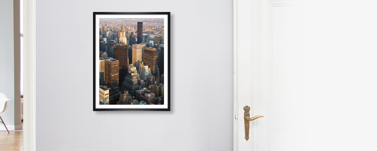 Mid Town Manhattan im weißen Holzrahmen. Setzen Sie Ihr neues Lieblingsmotiv dezent in Szene - wahlweise mit und ohne Passepartout.