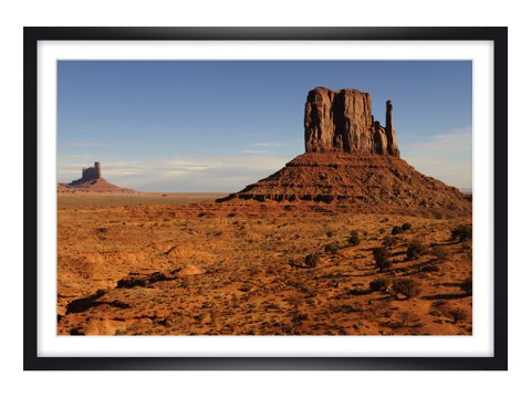 Monument Valley im weißen Holzrahmen. Setzen Sie Ihr neues Lieblingsmotiv dezent in Szene - wahlweise mit und ohne Passepartout.