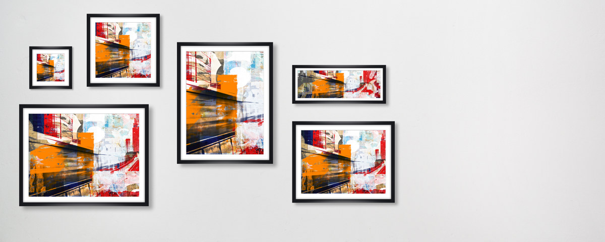 Urbanes Abstraktes im weißen Holzrahmen. Setzen Sie Ihr neues Lieblingsmotiv dezent in Szene - wahlweise mit und ohne Passepartout.