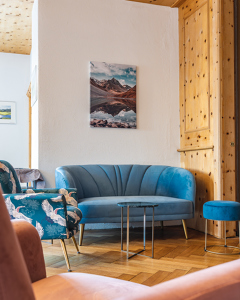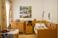 Collage aus Bildern vom Süden der Steiermark an einer Wand eines Seniorenheims in der Obersteiermark. "Schön! ... da waren wir oft ..."