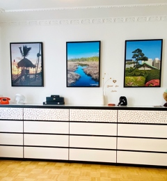 Wir haben die drei wichtigsten Reisen der letzten Jahre auf sehr schöne, mit Schattenfugen gerahmte Leinwände (80x60) drucken lassen - und sind sehr glücklich über das Ergebnis und die tägliche Freude daran.